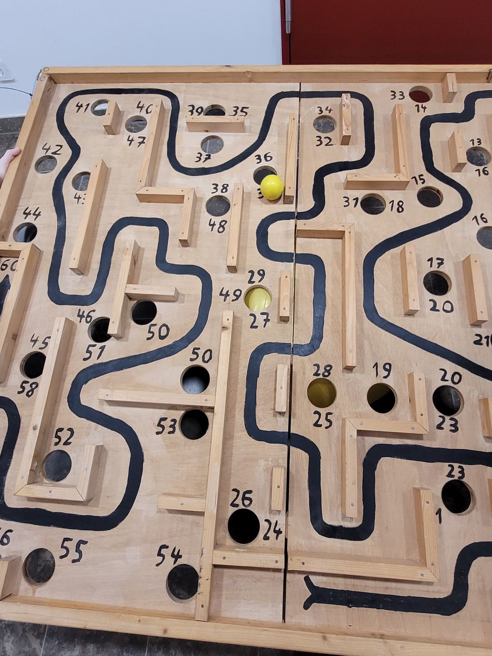 Wie weit schafft ihr es? Kommt der Ball komplett übers Löcherbrett?